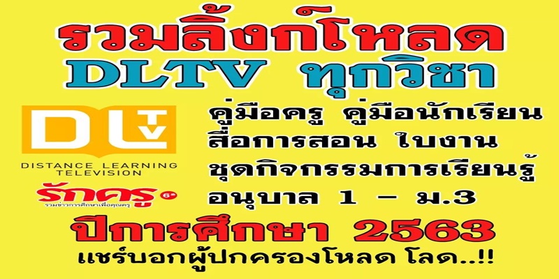 คู่มือครู แผนการจัดประสบการณ์ (อนุบาล-ม.3) แผนการจัดการเรียนรู้ สื่อการจัดการเรียนรู้ และเอกสารประกอบการจัดการเรียนการสอน DLTV ปีการศึกษา 2563 อนุบาล-ม.3